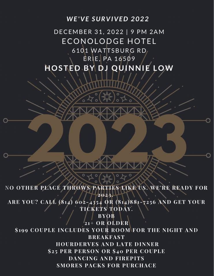 erie pa new years eve 2023 – Pittsburgh, PA New Years Eve Erie Pa Events | Eventbrite. New Year’s Eve 2022: Events around Erie to ring in 2023. Pittsburgh, PA New Years Eve Erie Pa Events | Eventbrite. New Years Eve Party At The EconoLodge, EconoLodge Erie, Wattsburg . New Year’s Eve 2022: Events around Erie to ring in 2023. Erie New Year’s Eve Parties | Eventbrite. New Year’s Eve 2022: Events around Erie to ring in 2023. Happy Birthday America! Great Ways to Celebrate Independence Day . New Years Eve Bash SOLD OUT , Room 33, Erie, December 31 2022 .